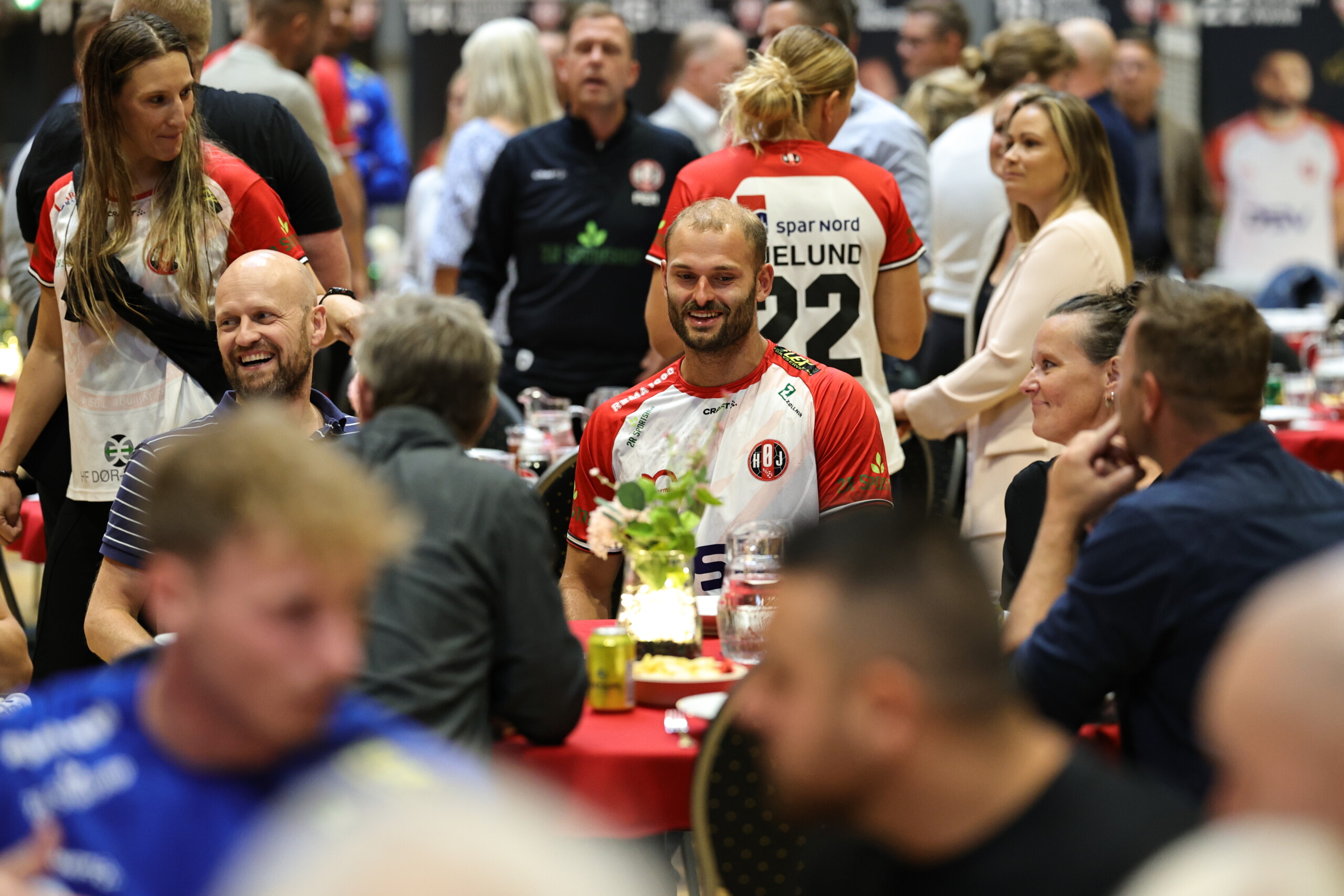 Spillerne og trænerstaben var placeret ude ved de runde borde, så både Erhvervspartnere og sæsonkortholdere fik mulighed for en hyggelig snak med vores helte.